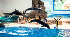 極地館:主要為極地動(dòng)物區(qū),分為白鯨池、海獅池、海豚池、海豹池、企鵝池、水獺池等水生生物展示休息表演池,以及北極狼舍、北極狐舍等陸生生物展示休息籠舍。館內(nèi)建有一個(gè)高大寬敞明亮,音響等設(shè)備設(shè)施先進(jìn)配備LED大型顯示屏的表演劇場(chǎng),可供1800多游客同時(shí)近距離觀賞海豚、海獅等精彩表演。